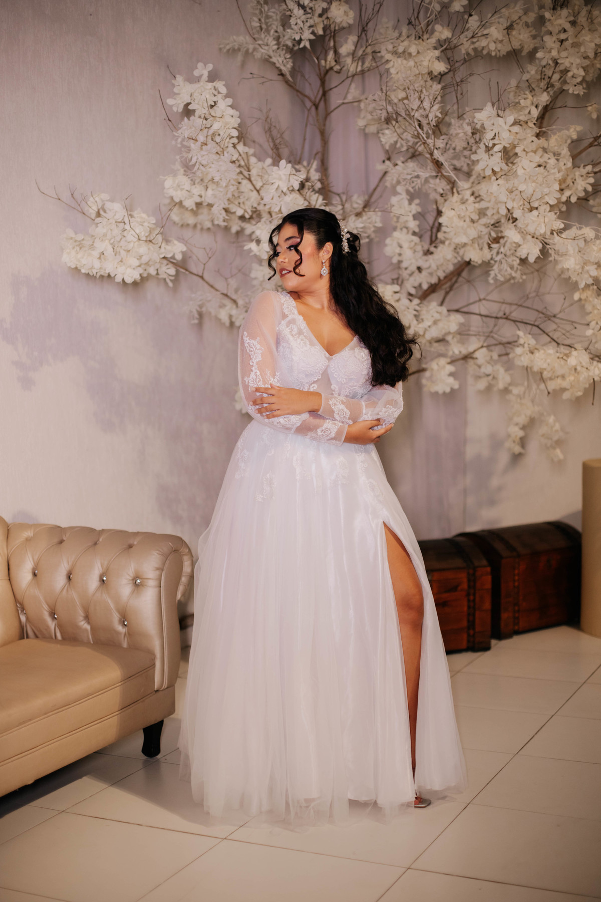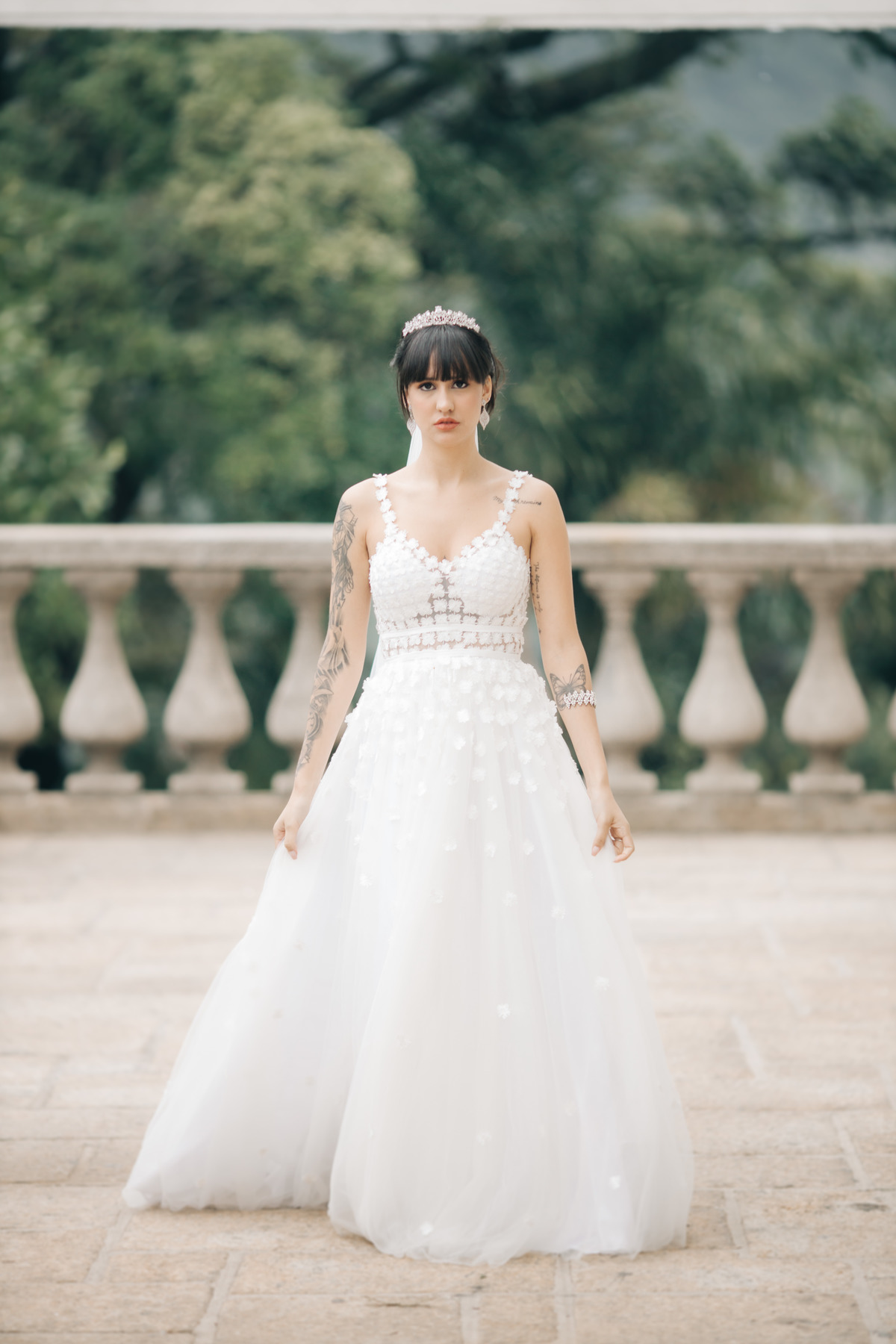 Esse estilo de vestido de noiva é perfeito para casamentos campistas, rústicos e de diurnos.